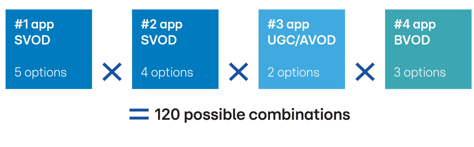 Most households are faithful to three or four apps for viewing – typically, two subscription video on demand (SVOD) services, an advertising-based video on demand service (AVOD), and a broadcaster video on demand (BVOD) service. But the number of apps available in any one of those categories – and therefore the huge range of possible combinations in any given household – has led to a scattering of the TV-watching audience across many environments. The growing convergence of smartphone-like app usage on TV means mass audiences are no longer engaging with content in a single, predictable way. As a result, it is increasingly difficult for brands to reach a mainstream audience.